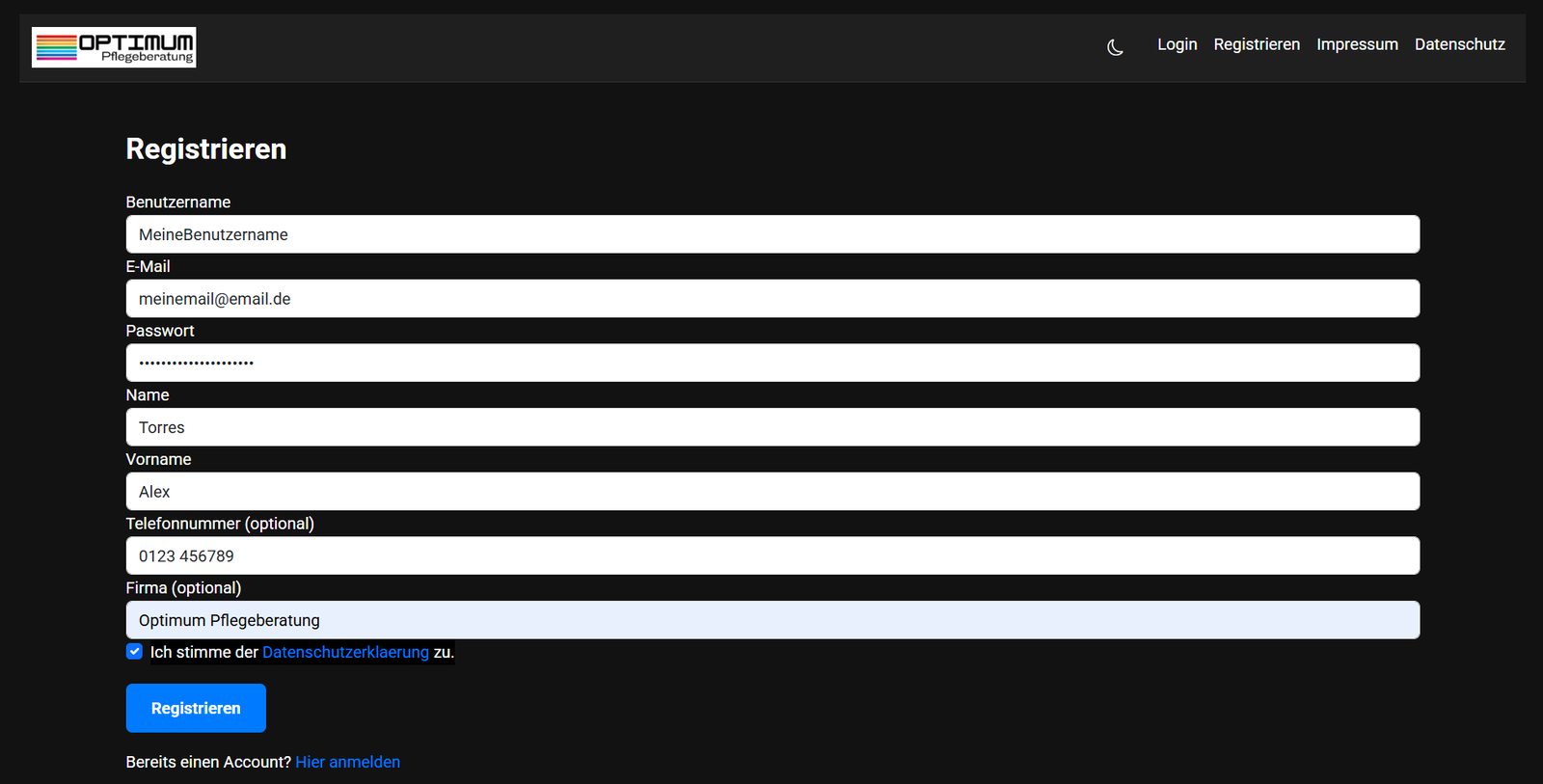 Diese Anleitung führt Sie Schritt für Schritt durch alle Bereiche des Tools – von der Registrierung bis zur Verwaltung Ihres Kontos. Unter jedem Abschnitt finden Sie einen Platzhalter für Screenshots. Ersetzen Sie ihn einfach durch ein <img>-Element, sobald Sie die passende Aufnahme erstellt haben (z. B. <img src="/static/images/howto/register.png" alt="Registrierungsformular" class="img-fluid rounded shadow">).